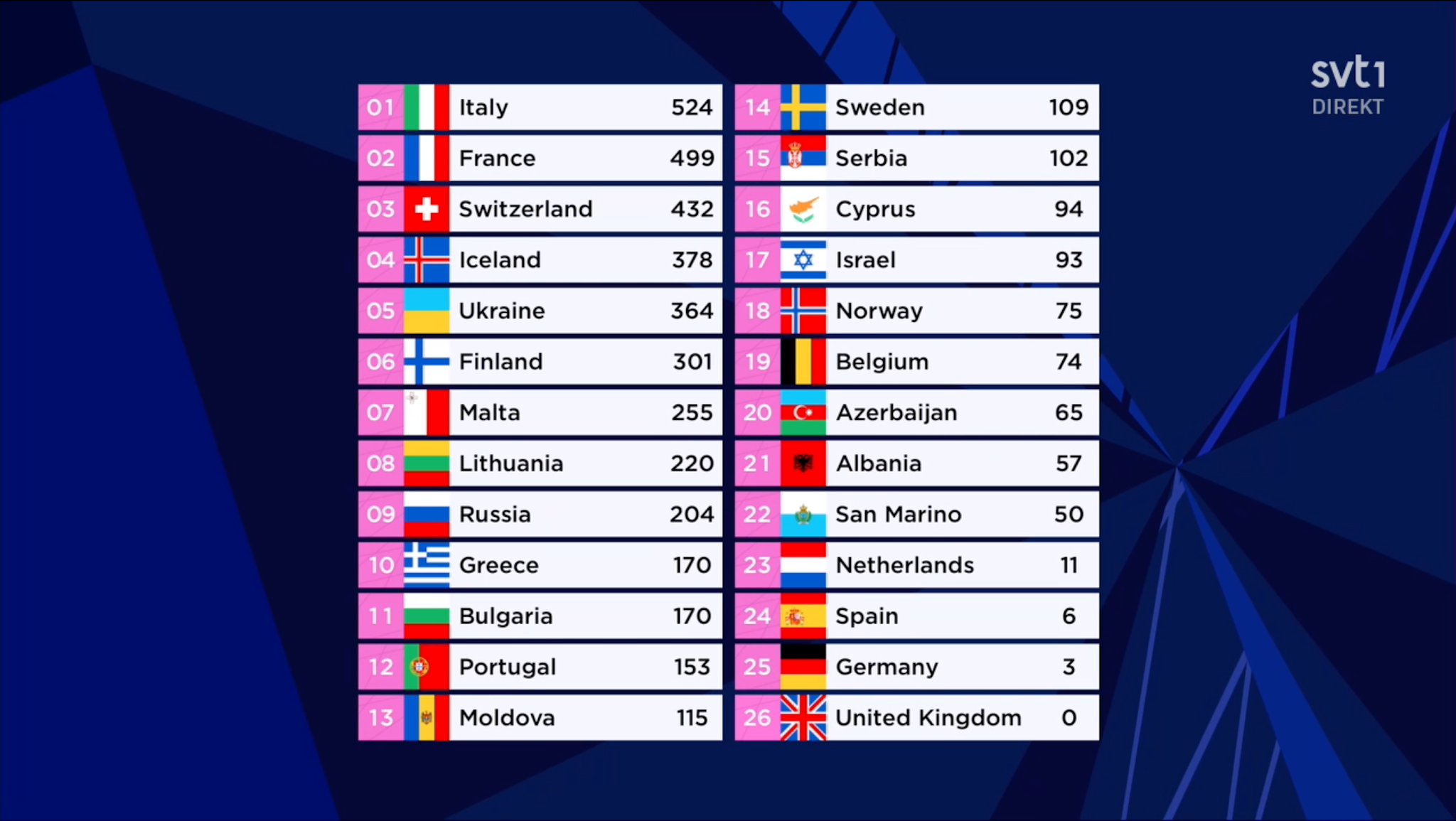 Italy has won the eurovision song contest on three occasions italy. It was a tight race between switzerland and france for much of the voting.